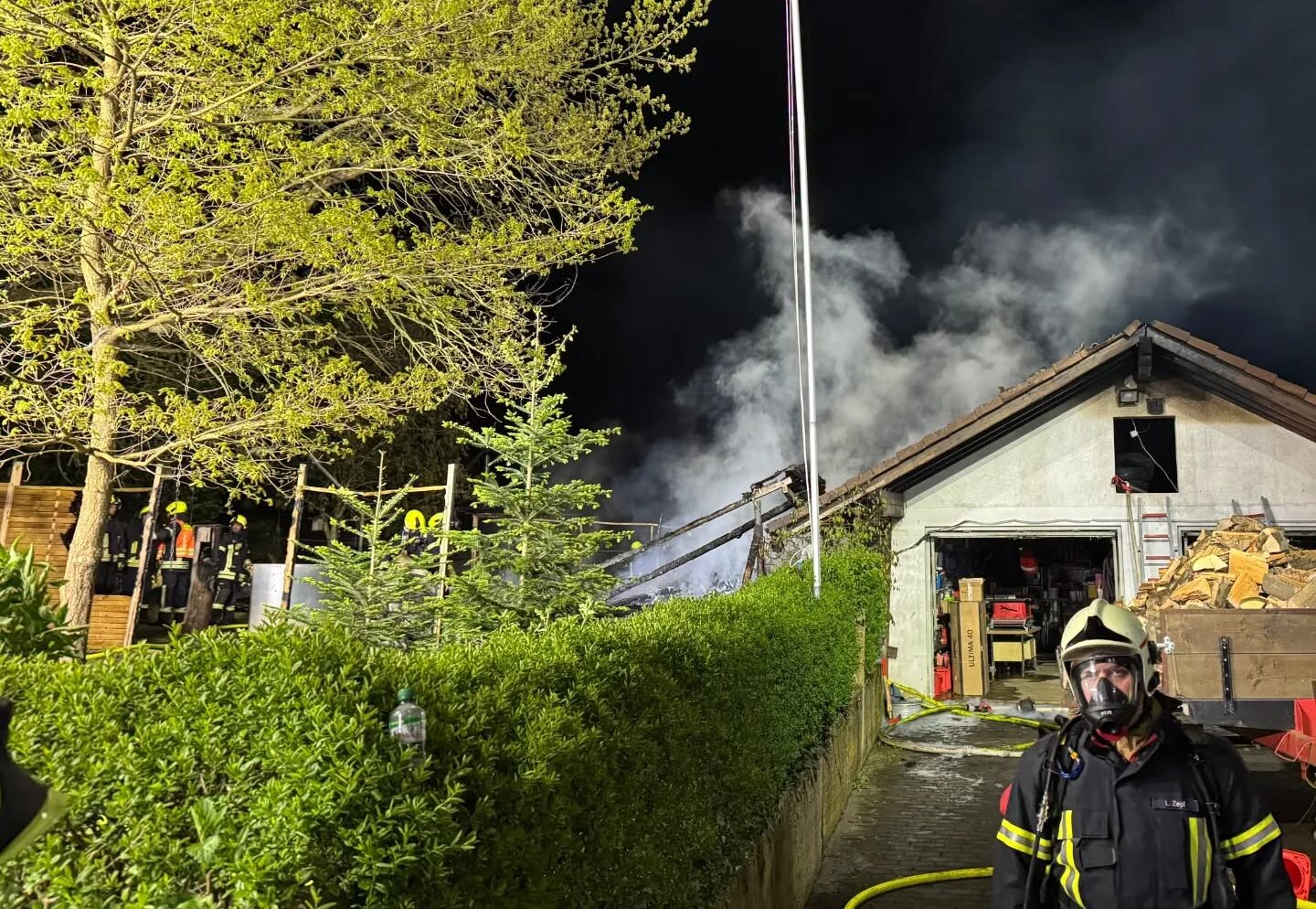 Umfangreiche Löscharbeiten nach Garagenbrand in Himbach