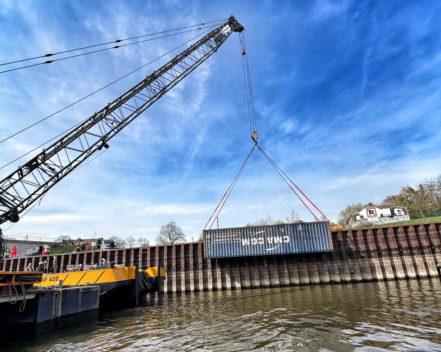 Mehrere Container stürzen ins Wasser – Feuerwehr und Kranschiff stundenlang im Einsatz