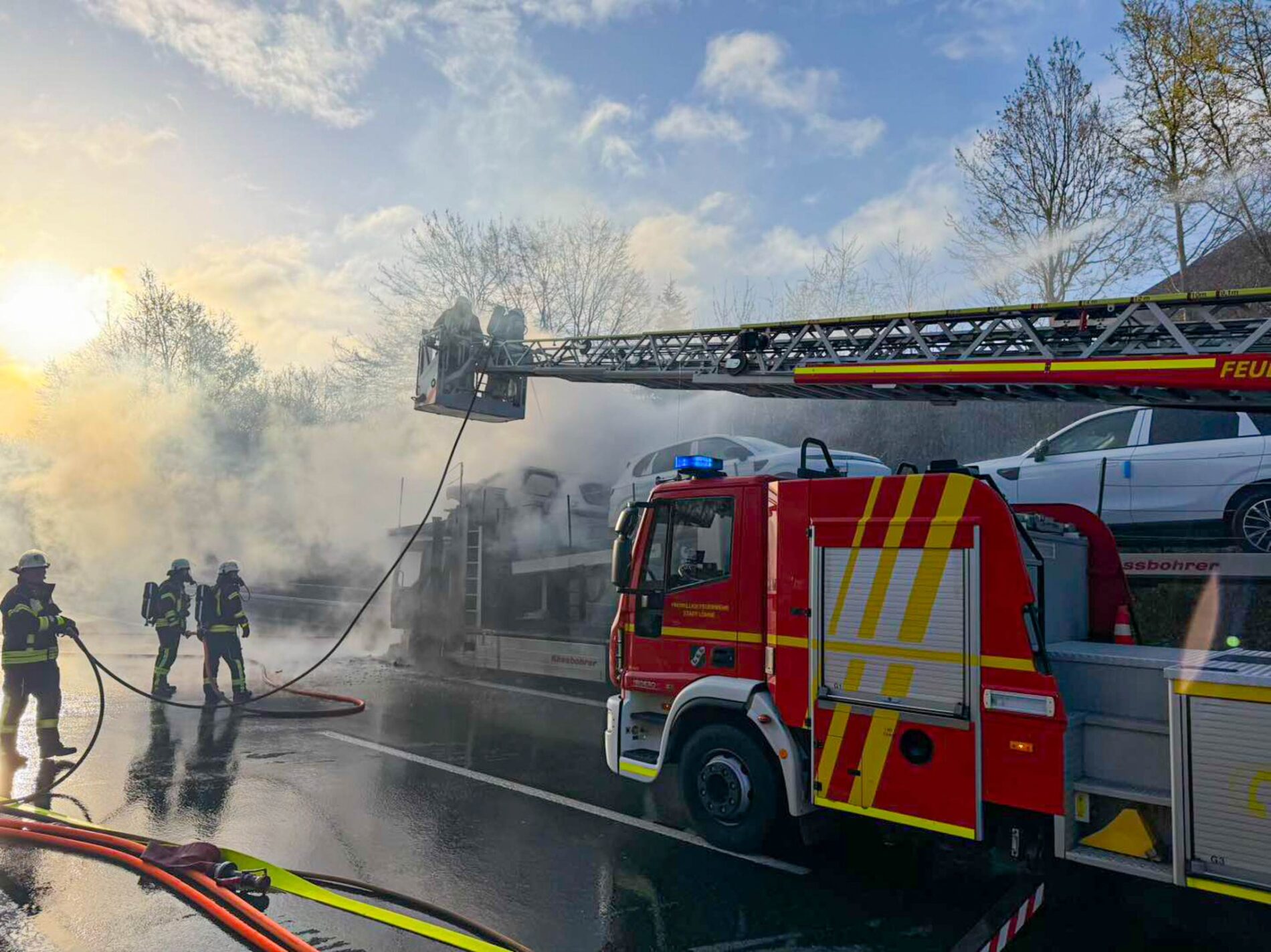 Die Feuerwehr leitete umgehend einen gezielten Löschangriff mit zwei C-Rohren ein. Durch das schnelle und koordinierte Eingreifen der Brandschützer konnte ein weiteres Übergreifen der Flammen auf die restlichen geladenen Pkw auf dem Anhänger erfolgreich verhindert werden. Trotz des schnellen Löscherfolgs entstand an der Sattelzugmaschine ein wirtschaftlicher Totalschaden. Glücklicherweise gab es bei dem Vorfall keine Verletzten. Der Fahrer konnte das Fahrzeug rechtzeitig verlassen und blieb unverletzt.
