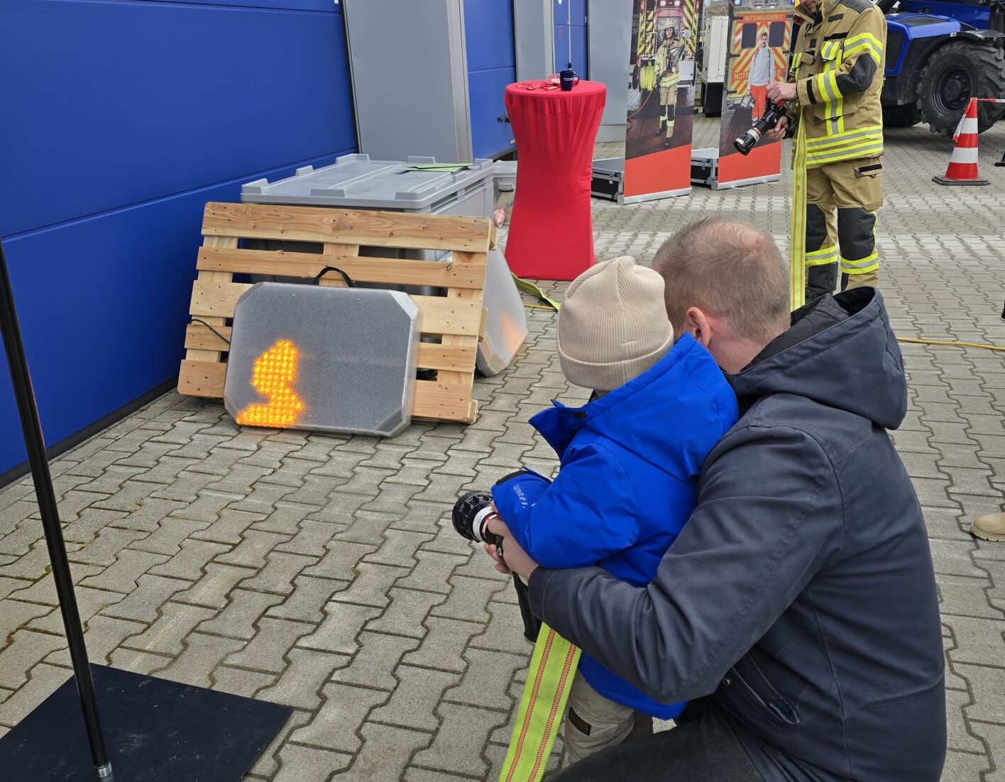 Auf dem Gelände des Technischen Hilfswerks (THW) boten die Organisationen ein abwechslungsreiches Programm. Besucher konnten bei der Feuerwehr schwere Einsatzkleidung anprobieren, modernste Fahrzeugtechnik bestaunen oder selbst Hand an verschiedene Geräte legen. Ein besonderes Highlight für die jüngsten Gäste stellte das LED-Brandherdpanel dar, an dem sie mit einem echten Strahlrohr spielerisch „Flammen“ bekämpfen konnten, um sich wie echte Feuerwehrleute zu fühlen.