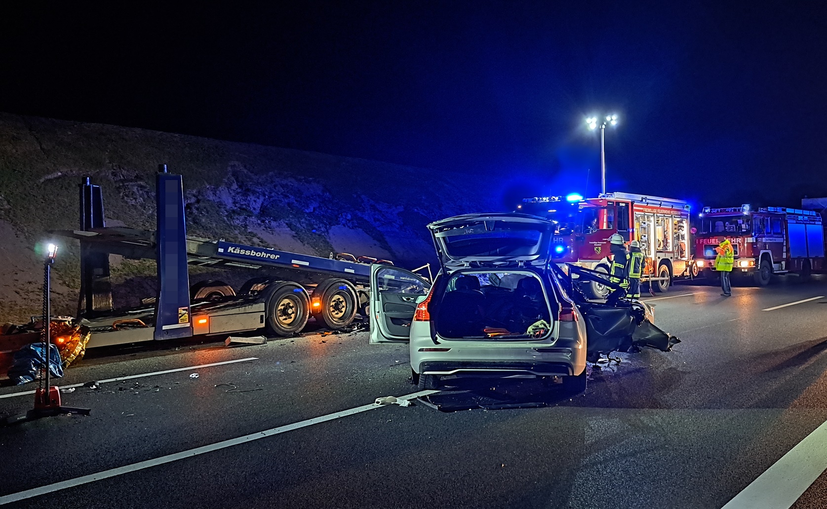 Ein schwerer Unfall auf der A3 bei Heßdorf hat am späten Samstagabend, den 11.04.2026, zu einem großangelegten Rettungseinsatz geführt. Gegen 21:00 Uhr wurden die Feuerwehren Dechsendorf und Heßdorf zunächst zu einem vermeintlich gewöhnlichen Auffahrunfall alarmiert. Doch am Einsatzort in Fahrtrichtung Würzburg bot sich den Rettern ein Trümmerfeld: Ein Pkw war mit hoher Geschwindigkeit und nahezu ungebremst auf einen am Seitenstreifen stehenden Pannen-Lkw aufgefahren. Die Wucht der Kollision war so gewaltig, dass die linke Seite der Fahrgastzelle sowie der gesamte Motorraum des Autos vollständig zerfetzt wurden. Trümmerteile schleuderten über alle drei Fahrspuren und blockierten die gesamte Autobahn.