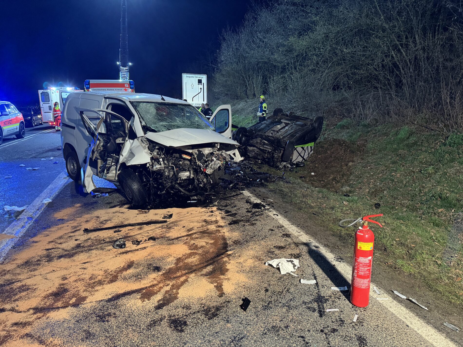 Trotz des schnellen Eingreifens der 32 Feuerwehrleute und des Rettungsdienstes nahm das Unglück einen traurigen Ausgang. Die Fahrerin des überschlagenen Pkw sowie der Fahrer des zweiten Fahrzeugs erlagen noch an der Unfallstelle ihren schweren Verletzungen. Eine Beifahrerin im Graben-Fahrzeug überlebte die Kollision mit schwersten Verletzungen und wurde nach der Erstversorgung durch den Rettungshubschrauber „Christoph 77“ in eine Spezialklinik geflogen. Die Feuerwehr leuchtete die Einsatzstelle großflächig aus, stellte den Brandschutz sicher und bündelte auslaufende Betriebsstoffe, um Umweltschäden zu verhindern.