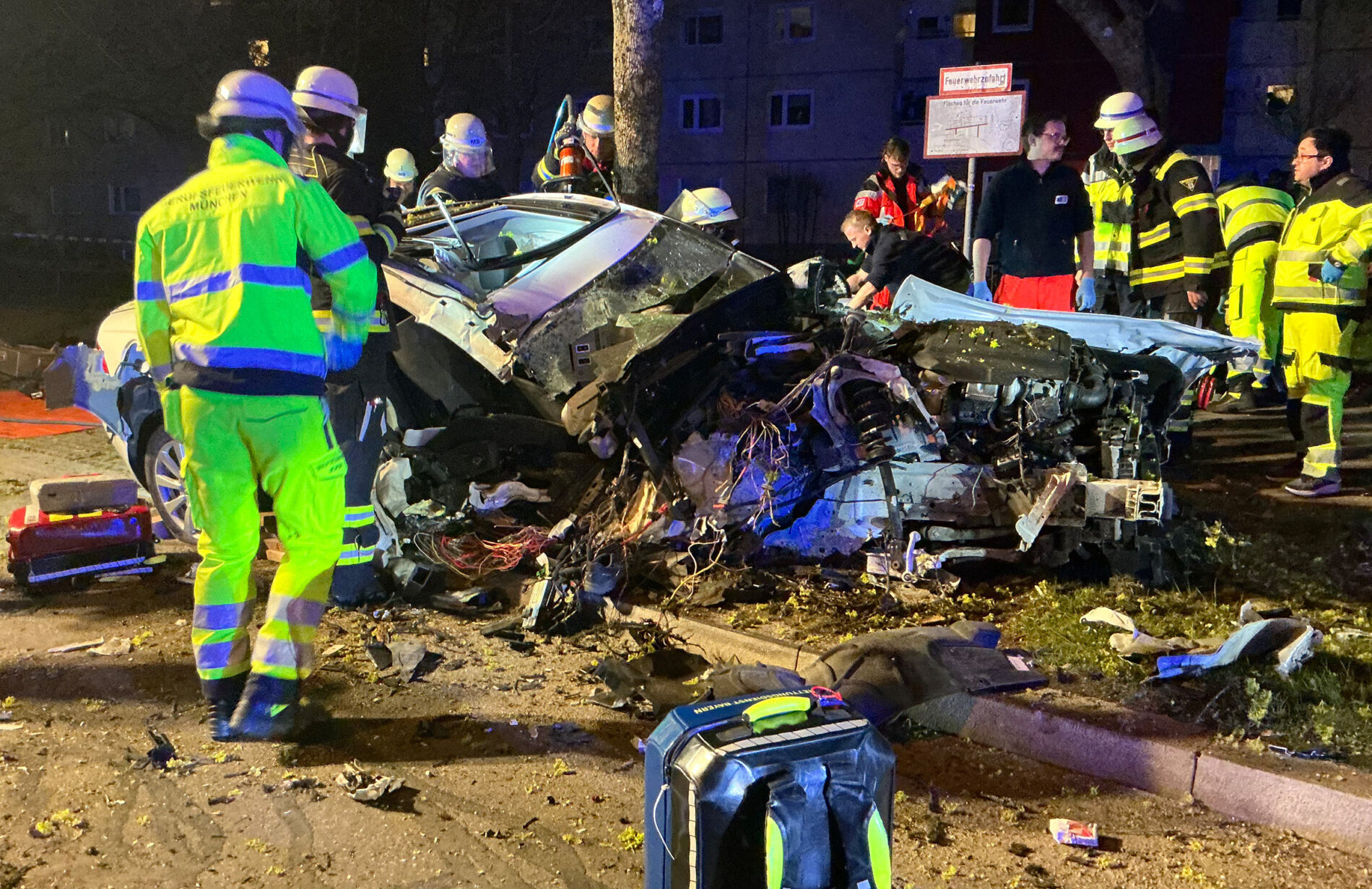 Ein folgenschwerer Unfall auf der Quiddestraße in München hat am späten Mittwochabend, den 08.04.2026, zu einem größeren Rettungseinsatz im Münchner Osten geführt. Gegen 22:05 Uhr kam ein weißer Jaguar aus bislang ungeklärter Ursache von der Fahrbahn ab und kollidierte mit hoher Wucht mit einem Baum. Als die ersten Kräfte der Feuerwehr München am Einsatzort eintrafen, bot sich ihnen ein dramatisches Bild: Das Luxusfahrzeug war insbesondere auf der Beifahrerseite völlig zerstört. Ein 18-jähriger Beifahrer lag bereits auf der Fahrbahn und wurde von Ersthelfern sowie dem Rettungsdienst versorgt. Er war im Verlauf der Kollision aus dem Fahrzeug geschleudert worden und erlitt dabei schwere Verletzungen.